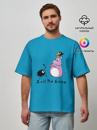 Мужская футболка оверсайз / Хомяк Бо ругается с духами сажи