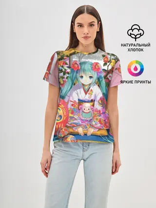 Женская базовая футболка / Окно Mika Hatsune