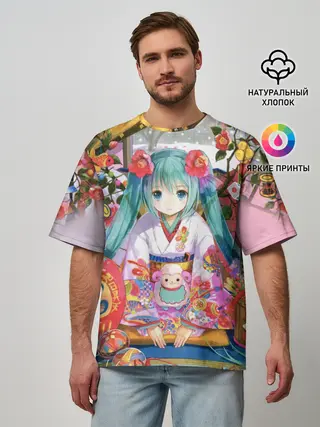 Мужская футболка оверсайз / Окно Mika Hatsune