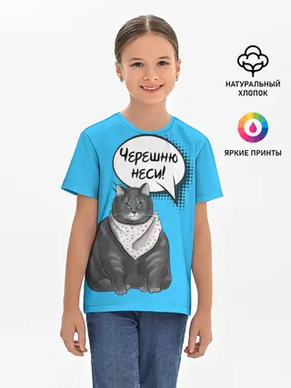 Лонгслив женский. Хлопок / Кот хочет кушот