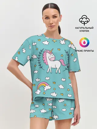 Женская пижама с шортами / Единорог радуга