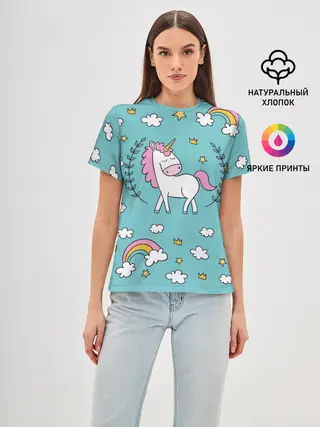Женская базовая футболка / Единорог радуга