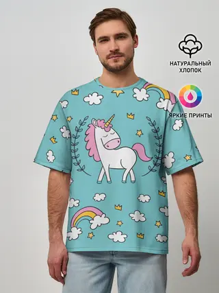 Мужская футболка оверсайз / Единорог радуга