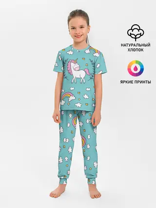 Детская пижама с брюками / Единорог радуга