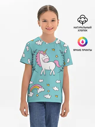 Детская базовая футболка / Единорог радуга
