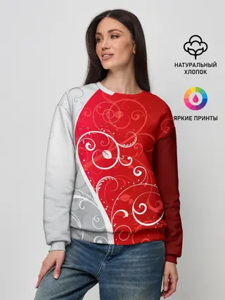 Лонгслив женский. Хлопок / Узор - Хохлома