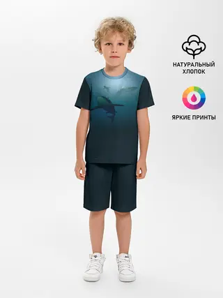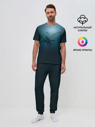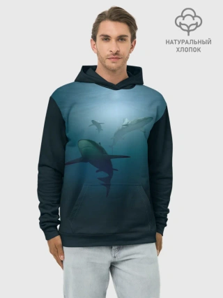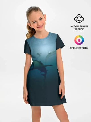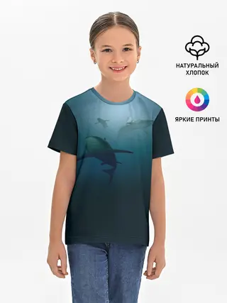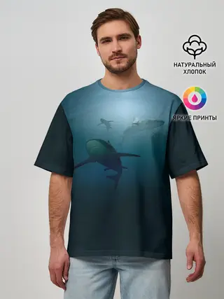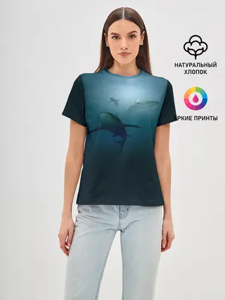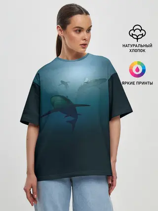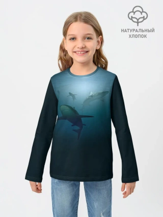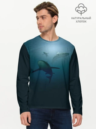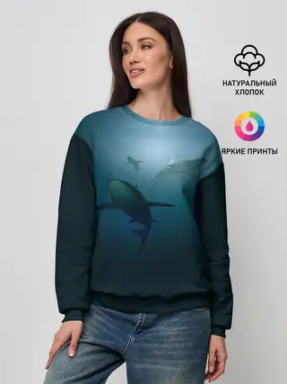 Лонгслив женский. Хлопок / Акулы и дайверы