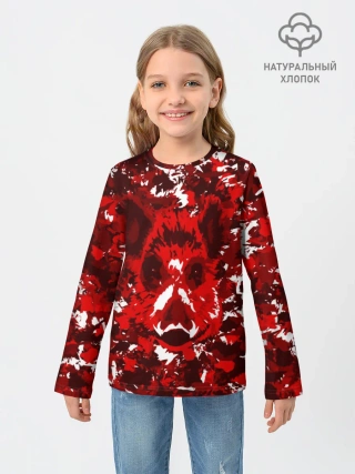 Детский лонгслив / Краснобелый камуфляж с кабаном