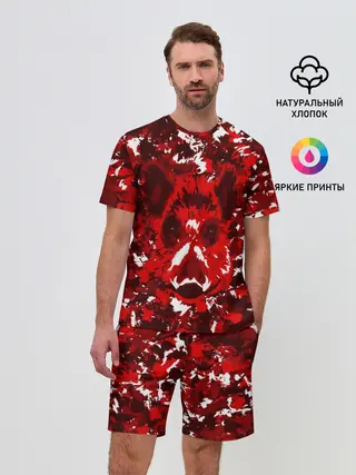 Мужской костюм с шортами / Краснобелый камуфляж с кабаном