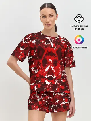 Женская футболка оверсайз / Краснобелый камуфляж с кабаном
