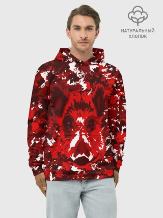 Худи мужской база хлопок / Краснобелый камуфляж с кабаном