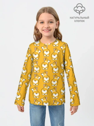 Детский лонгслив / Корги Паттерн