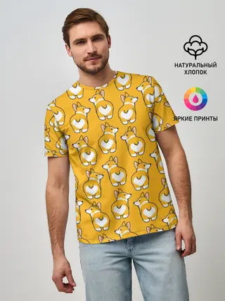 Мужская базовая футболка / Корги Паттерн