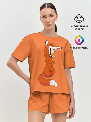 Лонгслив женский. Хлопок / Абстрактная лиса