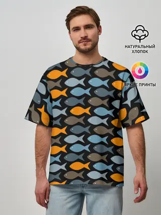 Мужская футболка оверсайз / Рыбки