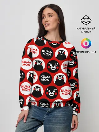 Лонгслив женский. Хлопок / Kumamon довольный