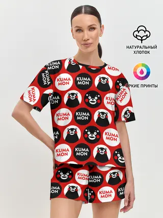 Лонгслив женский. Хлопок / Узор кумамонов