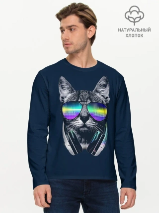 Мужской лонгслив базовый / Кот в Наушниках