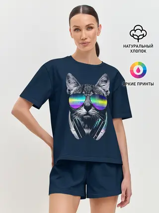 Женская пижама с шортами / Кот в Наушниках
