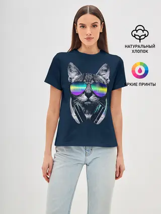 Женская базовая футболка / Кот в Наушниках