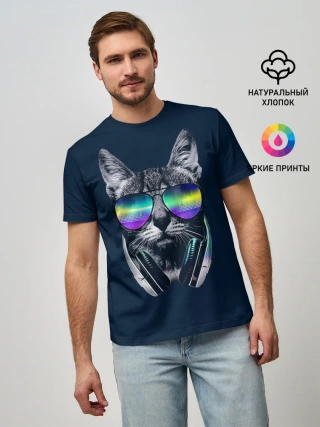 Мужская базовая футболка / Кот в Наушниках