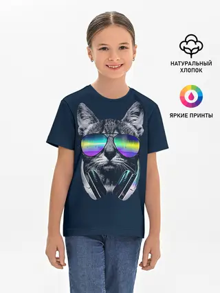 Детская базовая футболка / Кот в Наушниках