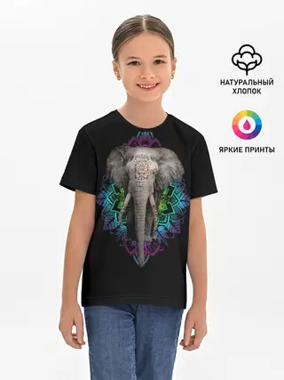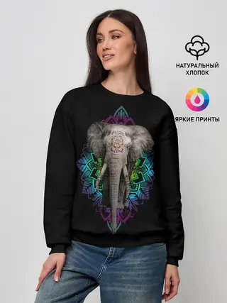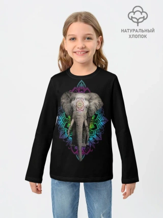 Лонгслив женский. Хлопок / Слоны | Узоры