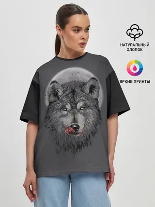 Женская футболка оверсайз / Волк Облизывается