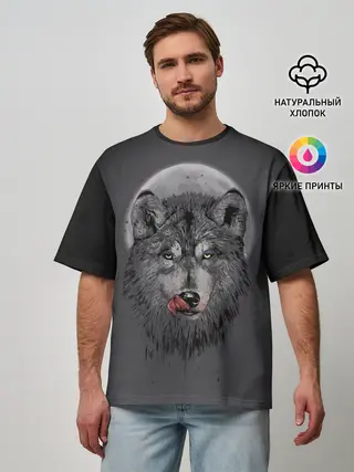 Мужская футболка оверсайз / Волк Облизывается