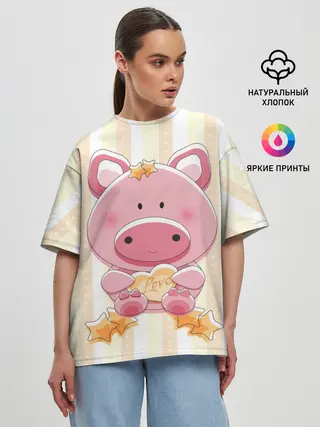 Женская футболка оверсайз / Поросенок love