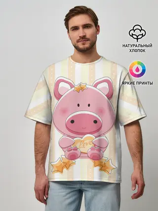 Мужская футболка оверсайз / Поросенок love