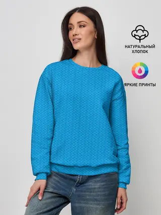 Лонгслив женский. Хлопок / Сине-бело-голубой лев