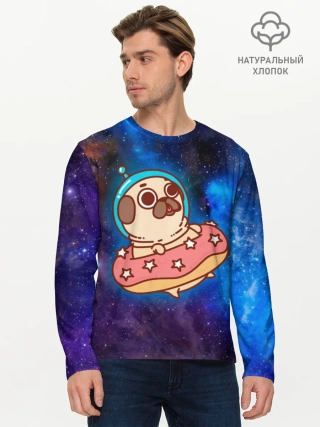 Мужской лонгслив базовый / Мопс Космонавт