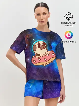 Женская пижама с шортами / Мопс Космонавт