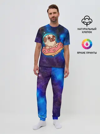 Мужская пижама с брюками / Мопс Космонавт