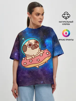 Женская футболка оверсайз / Мопс Космонавт