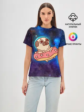 Женская базовая футболка / Мопс Космонавт