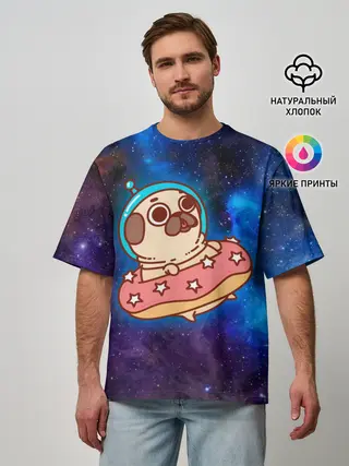 Мужская футболка оверсайз / Мопс Космонавт