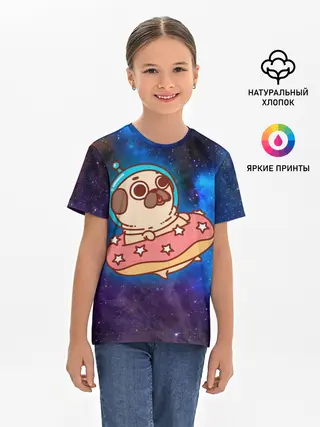 Детская базовая футболка / Мопс Космонавт