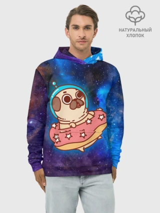 Худи мужской база хлопок / Мопс Космонавт