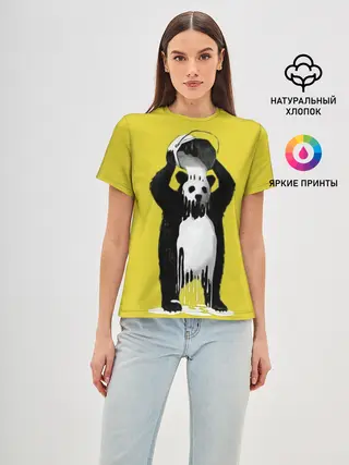 Лонгслив женский. Хлопок / Панды На Велосипеде