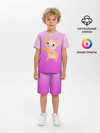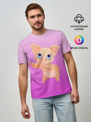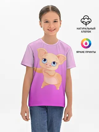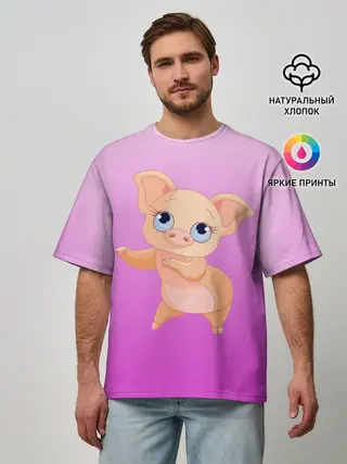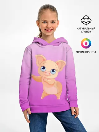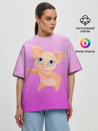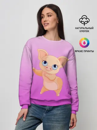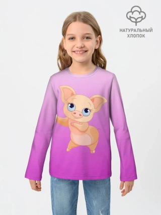 Лонгслив женский. Хлопок / Поросенок в цилиндре