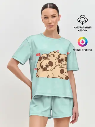 Женская пижама с шортами / Мопсы