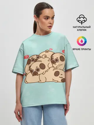 Женская футболка оверсайз / Мопсы