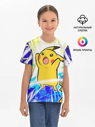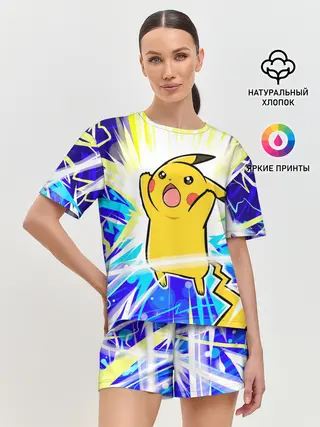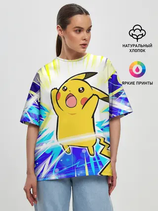 Лонгслив женский. Хлопок / Покемоны. Удивленный Пикачу