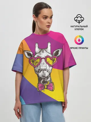 Женская футболка оверсайз / Праздничный жираф