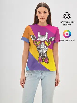 Женская базовая футболка / Праздничный жираф