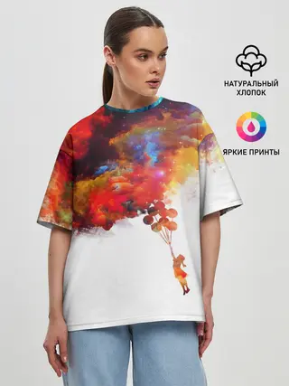 Женская футболка оверсайз / Девочка с шарами