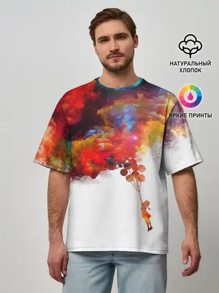 Мужская футболка оверсайз / Девочка с шарами