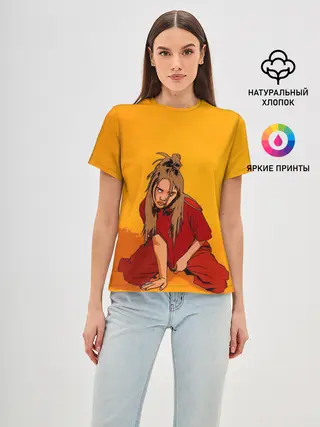 Лонгслив женский. Хлопок / Billie Eilish Акварель